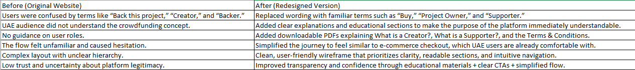 Most users in the UAE did not understand the concept of “crowdfunding,” “backing,” or the role of a “creator.”